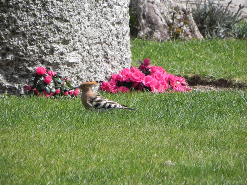 Hoje, uma das minhas sobrinhas enviou-me esta foto. (É o privilégio de quem troca a cidade pelo campo). Pelos vistos, um casal de poupas costuma passear-se em frente a sua casa, descontraidamente. Esta foi fotografada perto de uma oliveira de tronco esburacado que é, com certeza, o local da nidificação.